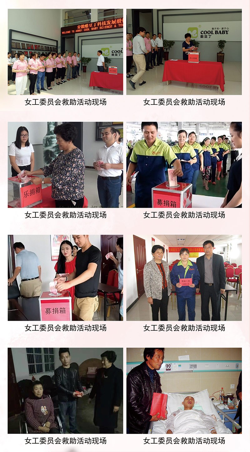 为充分发挥酷豆丁女工委员会的桥梁作用,弘扬中华民族的美德,自2012年女工委员会成立以来,先后救助因亲属大病而致困的职工12人,累计救助金额32.5万元。帮助职工渡过了难关,在公司引起强烈反响,女工委员会工作得到了充分的肯定。
