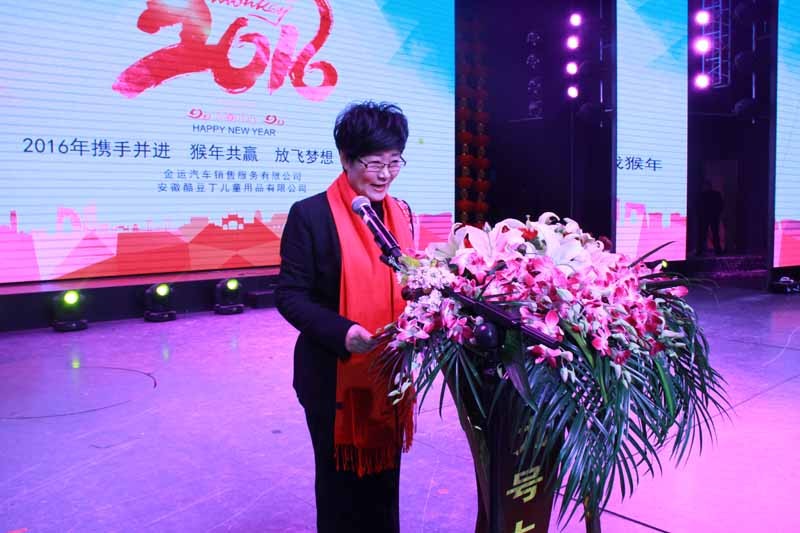 她说,2016年是“十三五”规划的开局之年,也是酷豆丁迈上新台阶的重要一年。公司将以外贸为龙头,以国内实体店为依托,继续发挥互联网+的优势,实现销售收入2.5亿元的目标。她相信,只要大家凝心聚力,开拓进取,真抓实干,敢于拼搏,就一定能够夺取新的胜利!最后,她祝愿酷豆丁所有的家人们新年快乐,阖家幸福。