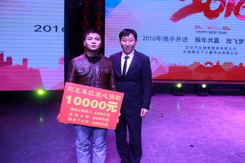 现场为金运公司员工捐款一万元