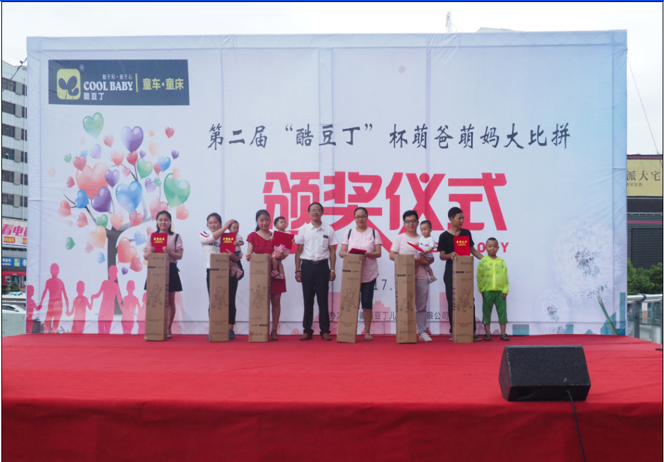 2017年7月1日上午在六安市新都会百大金商都广场举行了,由六安市金安区民政局、六安市金安区妇女联合会、六安市金安区妇幼保健院主办,安徽酷豆丁科技发展股份有限公司独家冠名,六安市皋城秀承办的第二届“酷豆丁”杯萌爸萌妈大比拼,网络评选大赛颁奖仪式正式开始。