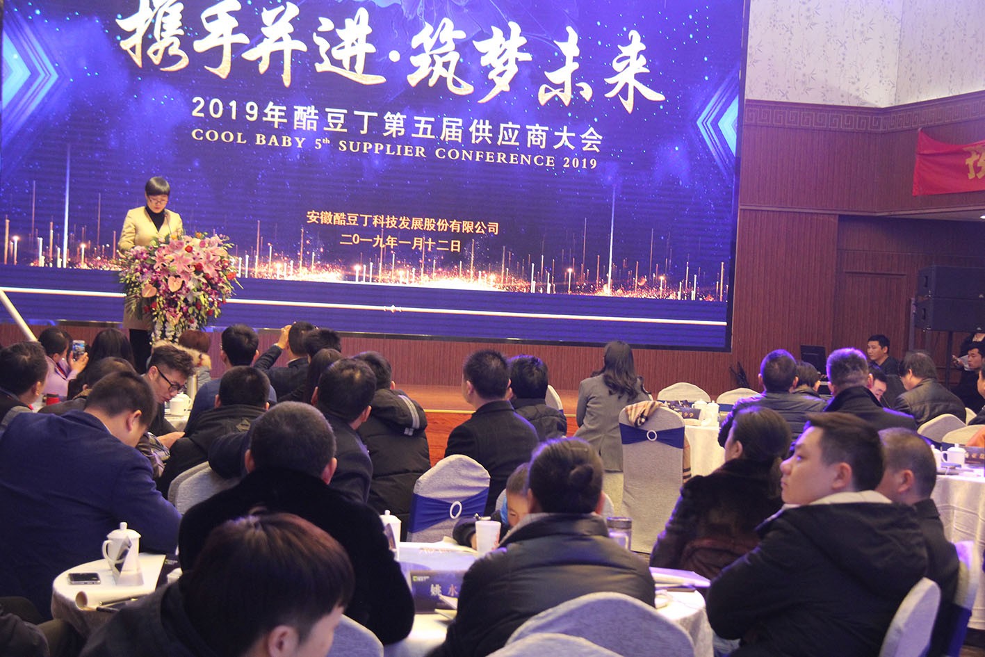 2019年1月12日上午,安徽酷豆丁科技发展股份有限公司以“携手并进 筑梦未来”为主题的第五届供应商大会隆重召开。会议对2018年供应商合作情况进行了总结和表彰。同时会上透露为实现的目标,打造精品童车、童床项目,作为供应商质量管理年,2019年,进一步完善供应商管理体系,持续合作共赢。