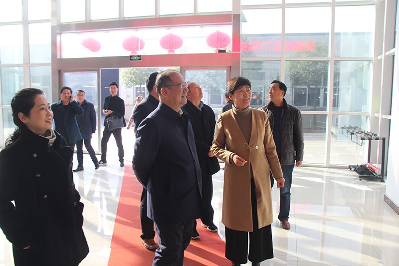 酷豆丁董事长张迎年带领副市长及其他领导一行参观生产车间