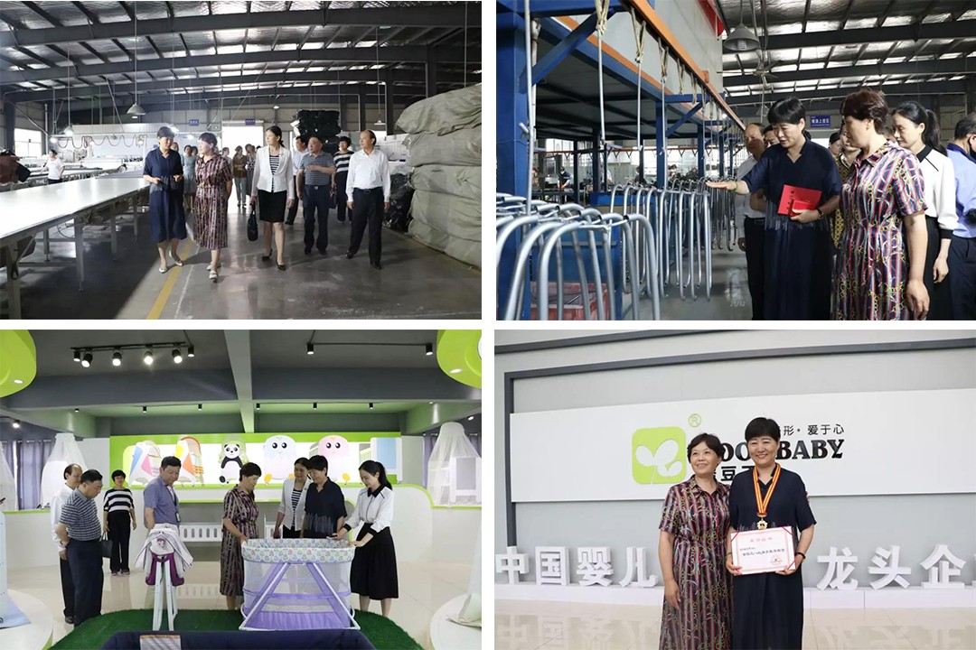 张若平一行来到了城北工业园安徽酷豆丁科技发展股份有限公司,为全国三八红旗手颁发奖牌,并参观了酷豆丁公司的厂区环境、生产车间、实验室和展厅等,张若平一行对张迎年在短短十三年时间,把一个不到50人的小作坊发展到今天1500多名员工的儿童用品规模企业,年产值3.5亿的龙头企业,年出口创汇3000多万美金的外向型骨干企业的壮举称赞不已。如今的酷豆丁,连续六年被评为金安区“十佳企业”,连续三届被评为六安市“文明单位”, “安徽民营文化企业100强”、“安徽民营企业进出口百强企业”、“省出口创汇百强企业”。