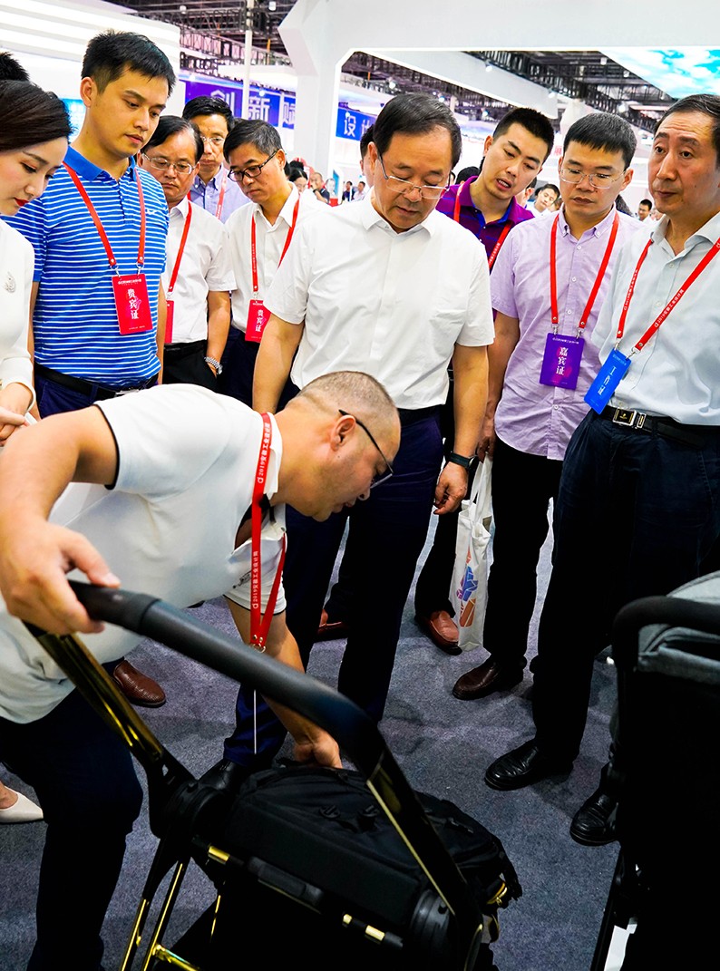 颁奖大会结束后,安徽省经济和信息化厅党组书记、厅长牛弩韬一行莅临安徽酷豆丁展台参观考察。安徽酷豆丁参会代表热情接待来访领导,牛厅长一行在公司工作人员的详细介绍下对安徽酷豆丁的发展状况有了一定的了解,并对安徽酷豆丁本次参展的产品产生浓厚的兴趣。现场工作人员也为牛厅长一行展示我们酷豆丁品牌的相关产品。