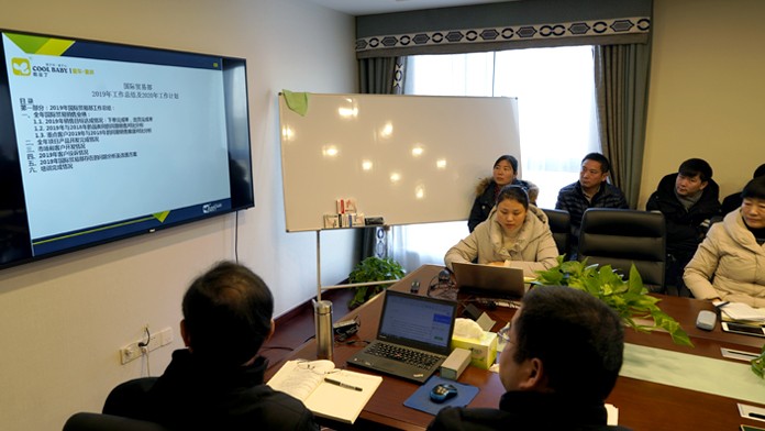 2019年12月31日,安徽酷豆丁科技发展股份有限公司2019年年度工作总结会议在红桥会议室召开,公司董事长张迎年、副总经理韩兵、张磊、刘枫、聂立飞及国际贸易部、国内营销部、财务管理部、科技管理部、质量管理部、采购管理部、生产管理部、品牌运营部、企业管理部,总经理办公室主要负责人参加会议,会议由张迎年董事长主持。