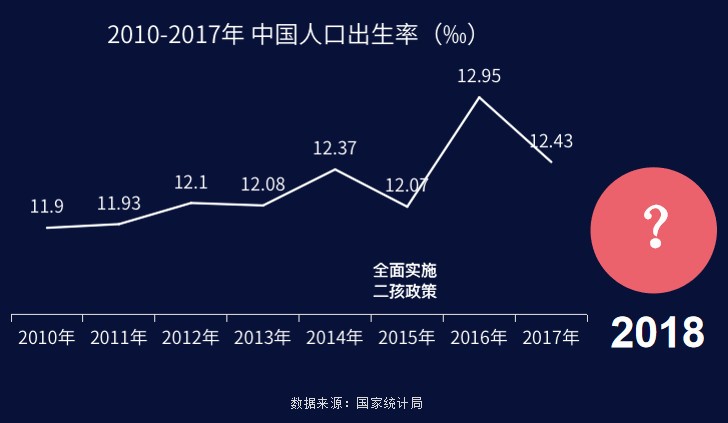 首先,我们看看新家庭发生了什么变化,2018年是全面两孩政策实施第三年,期间2016年有一个短暂的出生人口的爆发式增长,预计2018年会大幅下跌。我们同时看到家庭结构发生了一些变化,比如二胎占比越来越大,2017年已经达到了51%,而且二胎的增长量是非常迅速的。