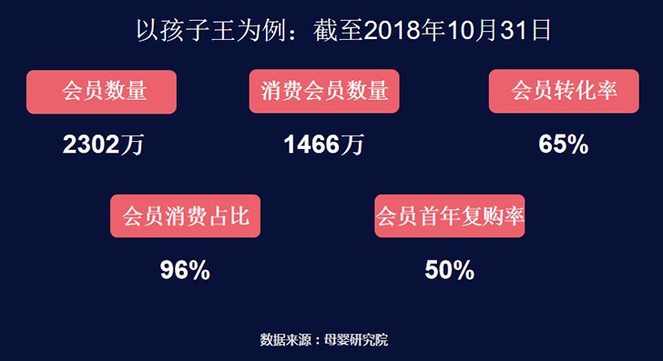 第九,会员制。2018年会员制大家都认可了,而且慢慢做出感觉来了,一个超级会员的价值是非常大的,而且每个平台都在做这样的事情。以孩子王为例,会员消费占比是96%,首年复购率超过50%。会员经济如何高效利用,如何给会员更多的仪式感,这是2019年非常重要的事情。