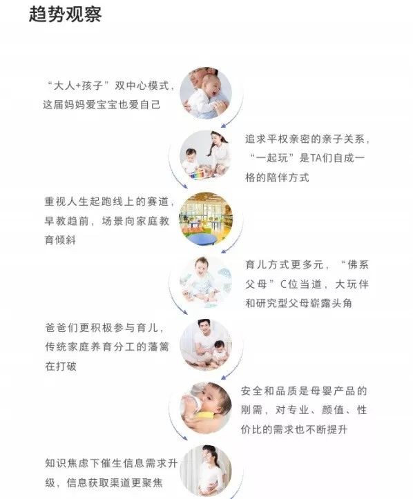 1、亲子关系趋平衡,开启“大人+孩子”双中心模式,这届妈妈育儿方式多元化,爸爸们更加积极参与育儿。