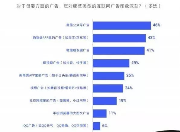 4、超四成母婴人群对微信和购物APP的广告印象深刻