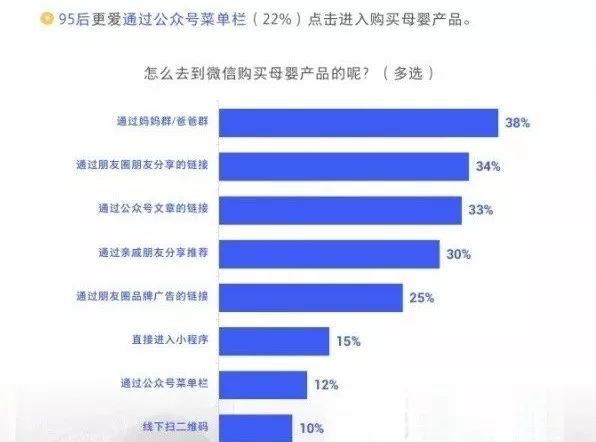·95后更爱通过公众号菜单栏(22%)点击进入购买母婴产品。