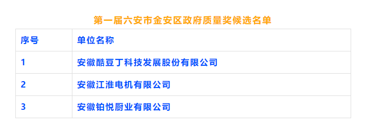 酷豆丁入选第一届六安市金安区政府质量奖单位提名