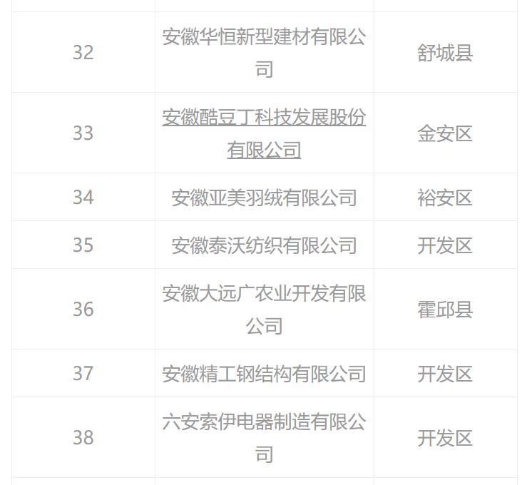 六安市民营经济领导小组办公室发布了“2020年六安市民营企业行业排序名单”。名单经企业自主申报,六安市县区政府、市直有关部门审核后评选出六安市民营工业百强!