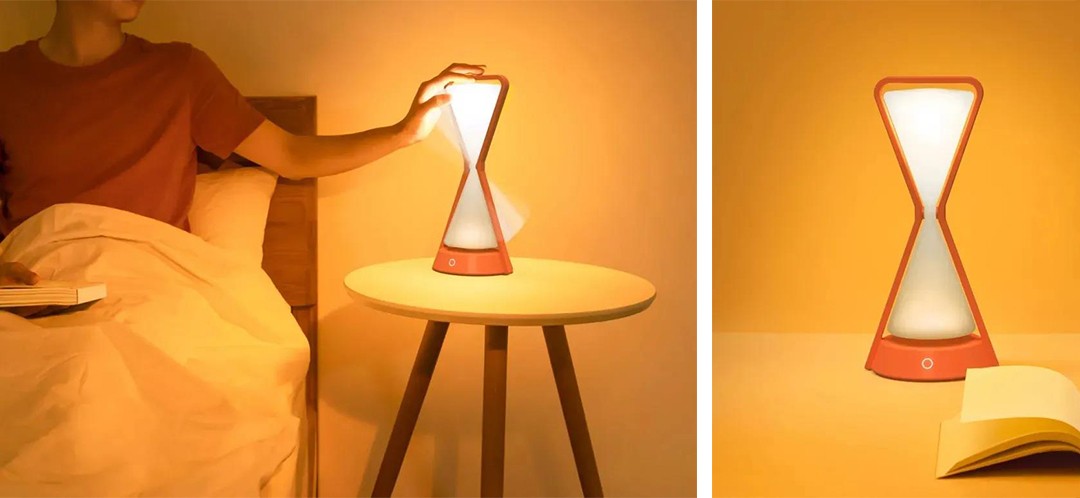 该款台灯的外形设计参考传统沙漏的形状,当旋转台灯的照明区域时,灯光打开,同时沙漏也开始计时。