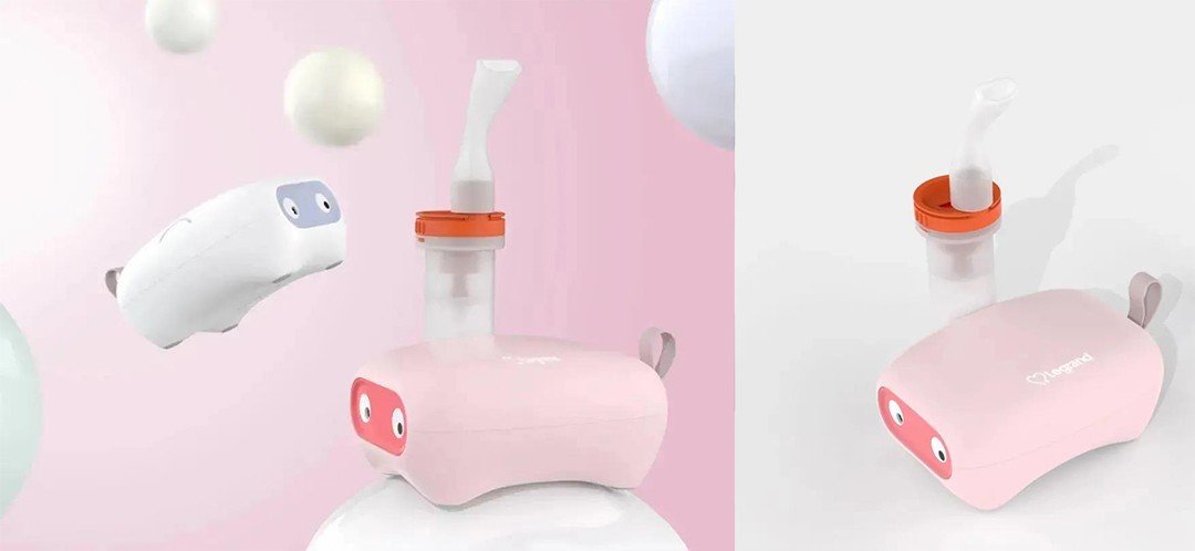 Piggy雾化器压缩机是专为儿童设计的,可在儿童患呼吸道疾病时为父母提供帮助。 儿童生病时,由于传统的医疗器械“冰冷”的外观会让儿童产生抵抗情绪,Piggy雾化器压缩机采用类似小猪的形状设计,并用小猪眼睛模拟开关按钮和充电孔,小猪的嘴设计为固定雾化器杯,小猪的尾巴是用柔软的棉制成的手柄,将产品的功能与猪的外观完美匹配,提升对儿童的亲和力。