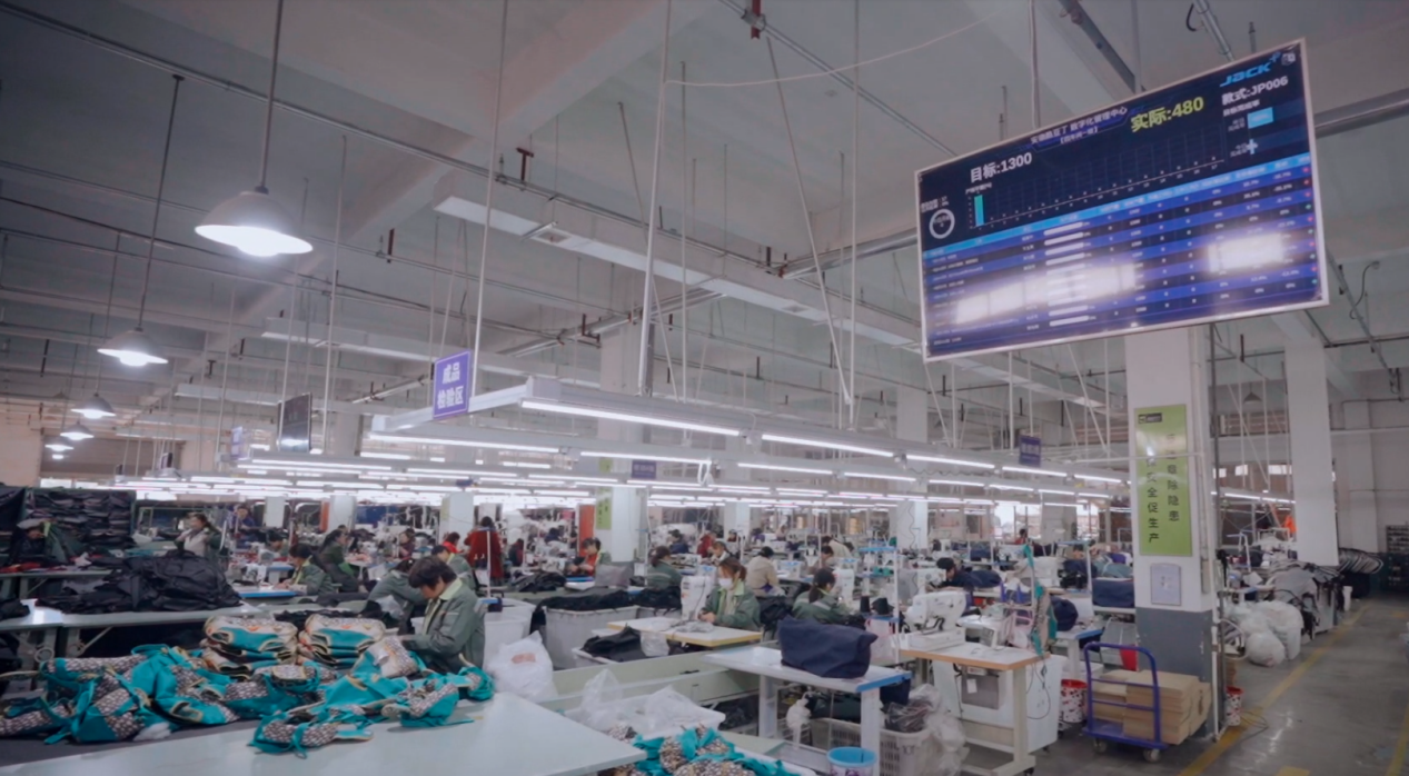 而缝纫板块的“5G+工业互联网”使产线平衡则得到了强有力的技术支撑,通过系统屏幕实时监测,对于出现异常的工作异常进行人为精准干预,产线上半成品堆积变少,产线不会被切断,始终有序进行,不仅效率提高,产量较之前也提升了30%左右。