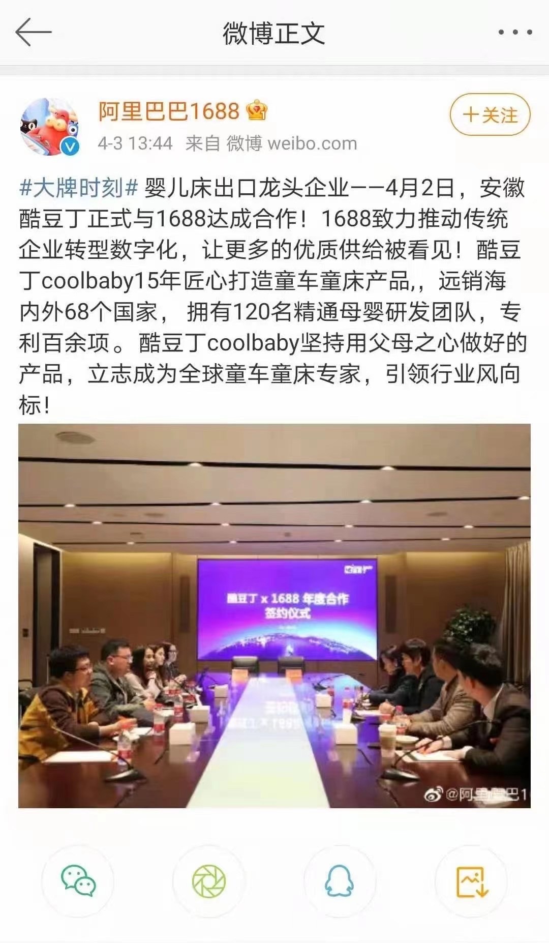 2021年4月2日,作为国内婴儿床出口龙头企业的安徽酷豆丁科技发展股份有限公司(以下简称:酷豆丁)与1688正式达成合作!