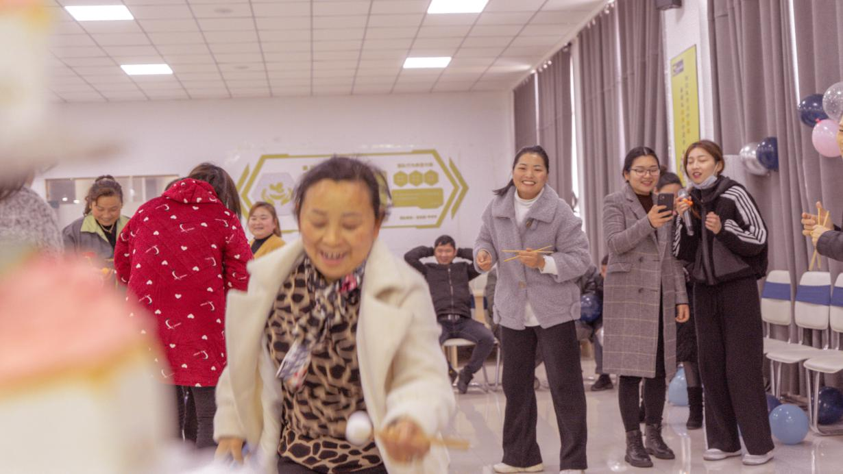 活动不仅有丰盛的生日蛋糕,还穿插游戏环节,大家参与游戏比赛,为团队争第一,特别是用筷子左手夹起乒乓球接力赛,有的轻巧灵活、有的稍显笨拙,友谊第一,比赛第二,个个都努力奔跑,欢声笑语,让他们在游戏比赛中感受集体生日幸福感。