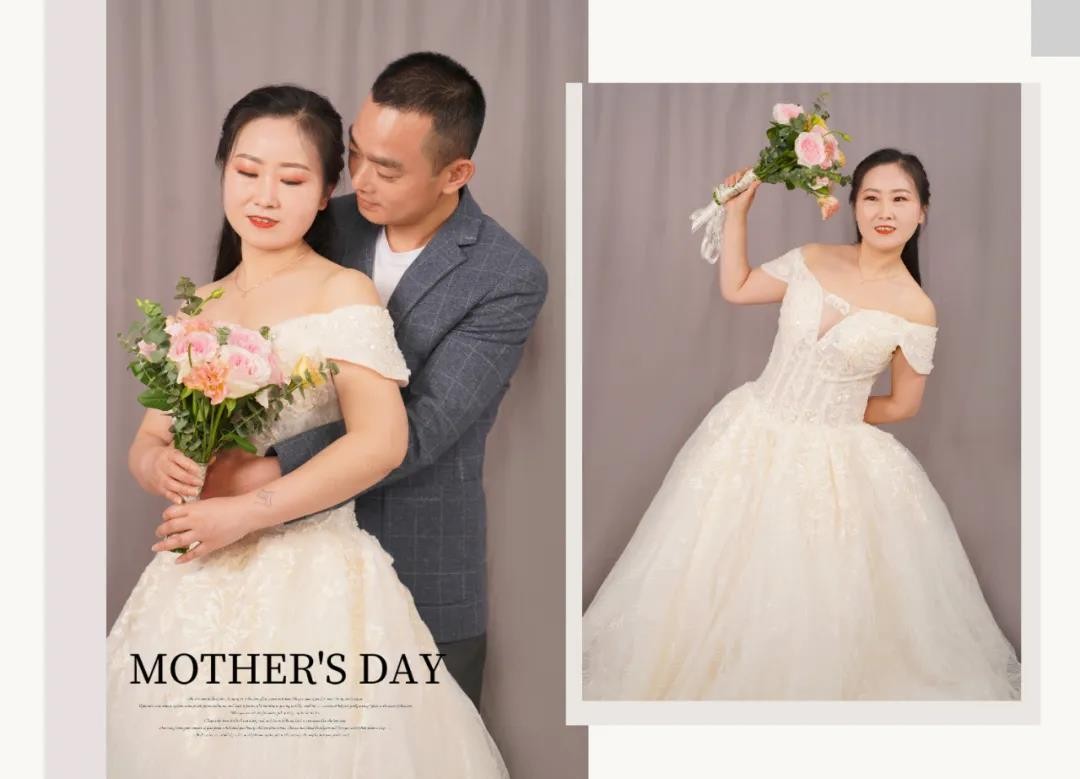 酷豆丁在2021年母亲节来临之时,特邀公司职工,送去特殊的礼物,在镜头下记录“用一身婚纱·重温幸福”时刻。为幸福助力,为爱点赞。