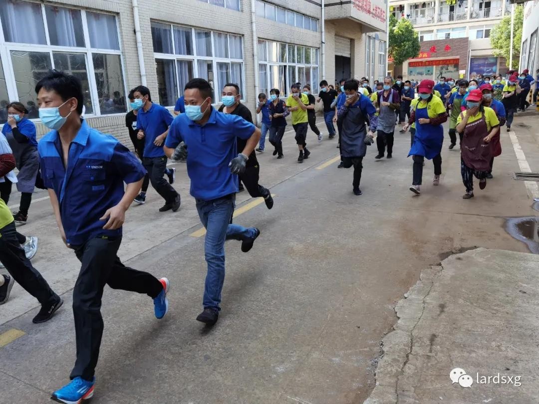各车间员工在听到警铃声后,立即按要求迅速撤离