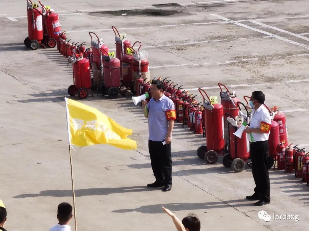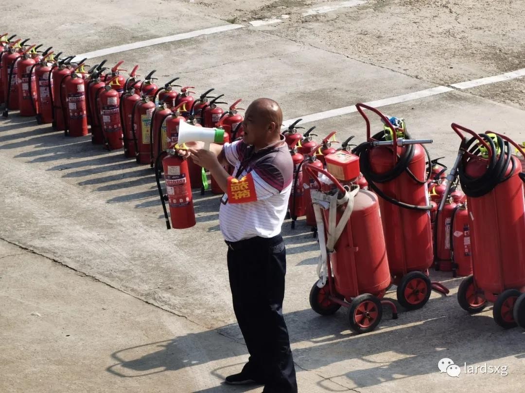 为让所有不会使用灭火器的员工都能进行一次实际操作,现场准备了100多个即将过期的灭火器供大家演练