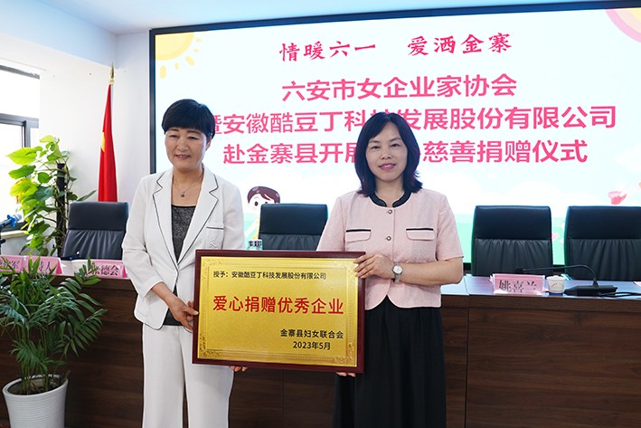 活动现场,金寨县妇联向酷豆丁颁发了“爱心捐赠优秀企业”荣誉奖牌,以感谢酷豆丁对金寨县妇女儿童事业的支持。