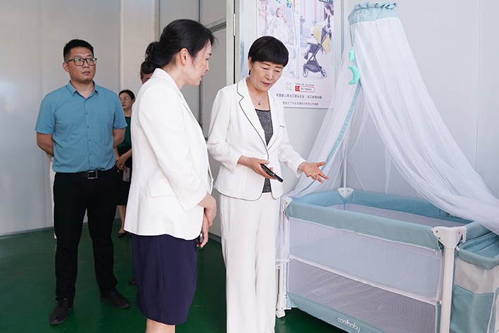 捐赠仪式结束后,酷豆丁一行随市妇联、市女企业家协会赴法治广场母婴室、安徽省名泰电声科技有限公司爱心母婴室等捐赠点进行了参观,并对童车童床等产品的使用方法和特点进行了讲解。