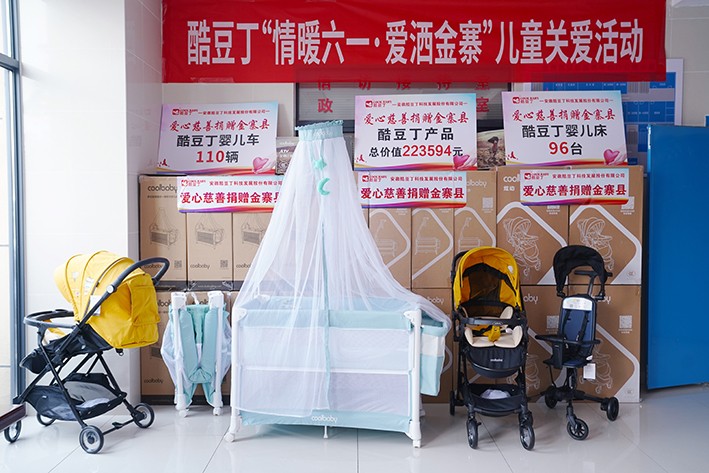 延续“聚爱行动”,塑造“爱心工程”,此次活动酷豆丁向金寨县困境家庭和县内相关公园、广场、景区及企业母婴室共捐赠童车110辆、童床96张,价值22万余元。以爱心传递温暖力量,以公益践行社会责任,关心儿童茁壮成长。
