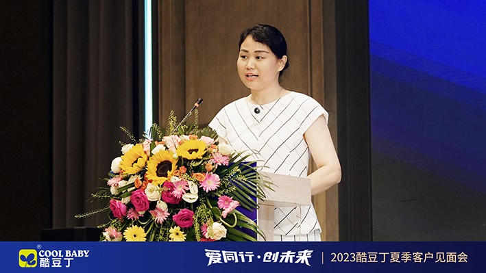 在新的历史起点,赋能创业者、玩法新升级,酷豆丁副总经理邵行梅带来了母婴消费群体分析与选品介绍的分享。她精准剖析了新时代母婴母婴消费群体的带娃现状、特点、需求等,为众多客商的营销方向提供了参考。同时就酷豆丁热门产品和热销品趋势进行了详细介绍,为客商提供了可参考的选品指南。除此之外,邵总还全面解读了酷豆丁合作政策、加盟要求等信息。