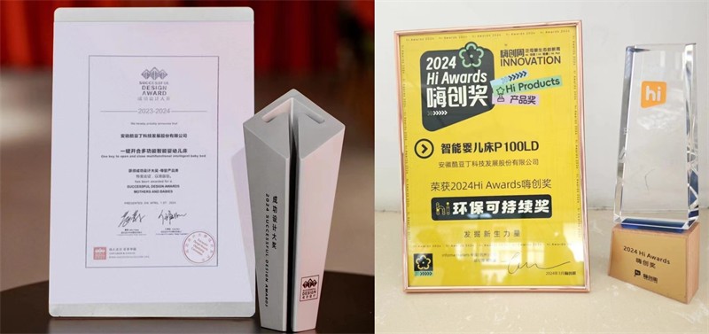 3月15日,在嗨创周举办的产品大赛上,酷豆丁P100LD智能婴儿床凭借出色的环保性能和可持续设计理念,成功夺得嗨创奖2024 Hi Awards环保可持续奖。6月16日,酷豆丁袋鼠智能婴儿床再次凭借卓越的设计理念与创新技术,一举斩获母婴产品类成功设计大奖,进一步彰显了酷豆丁在智能婴儿床领域的领先地位与卓越贡献。