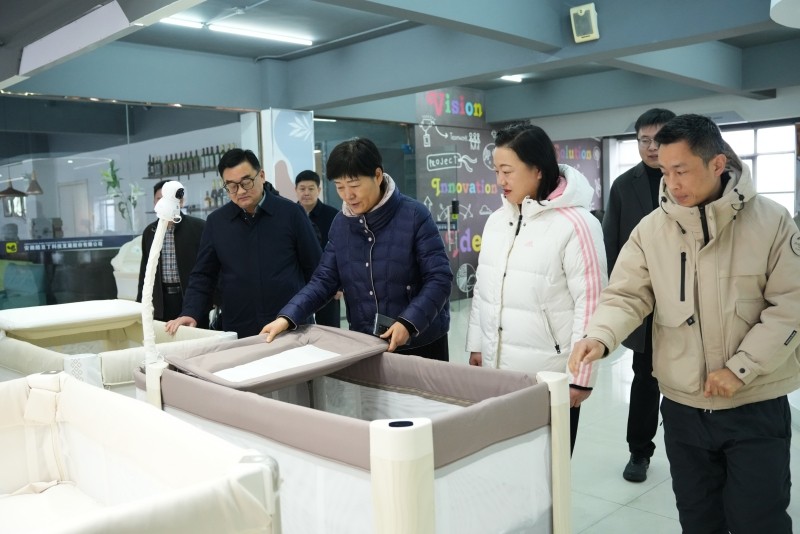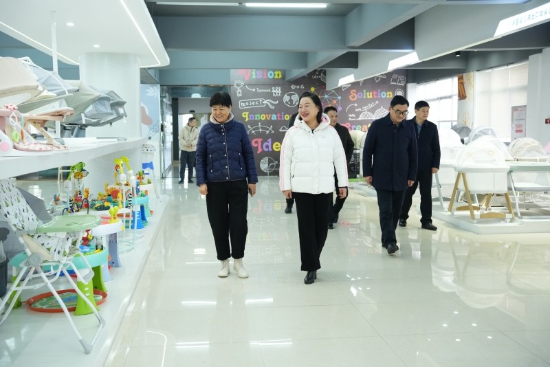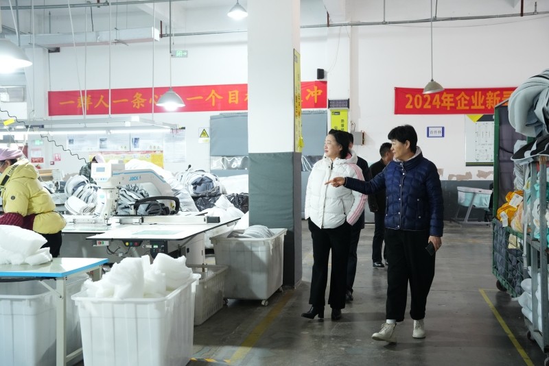 调研过程中,于军深入了解酷豆丁的经营现状,聚焦企业发展中遇到的困难,同时积极宣导相关政策,为企业排忧解难。于军在董事长张迎年的陪同下,首先来到酷豆丁样品间,细致考察公司产品,详细询问2024年酷豆丁的销售情况。随后,一行人前往缝纫车间,实地考察生产状况,了解生产流程、设备运行以及人员工作情况。