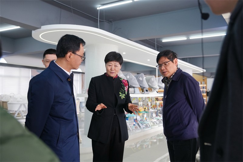 吴劲松同志首先前往了酷豆丁样品间进行参观,张迎年董事长详细介绍了公司最新研发的智能婴儿床等智能产品,展示了这些产品在创新技术方面的突破。随后,调研组前往酷豆丁的质量检测实验室,实地观摩了产品的检验过程,进一步了解了酷豆丁在保障产品质量和消费者体验方面所做的努力。